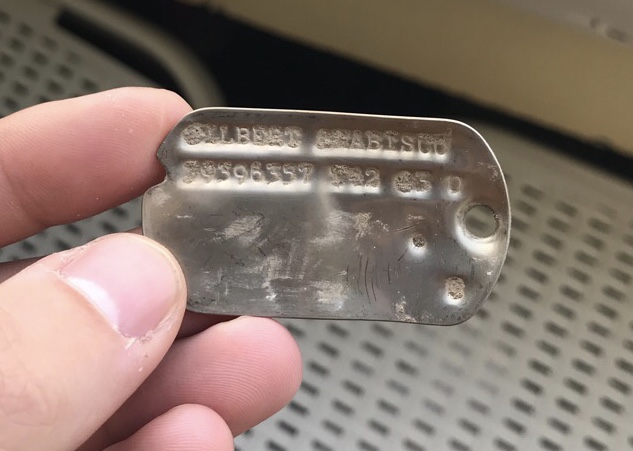 Dog Tag behoorde tot een 101st Airborne glider die was gecrashed met zijn glider. Deze was bevestigd op zijn kruis voordat die werd verplaatst naar zijn permanente begraafplaats deze kruizen werden gedumpt in zogenaamde “dumpholes”. Zijn nog wat restjes van witte verf op de dogtag.