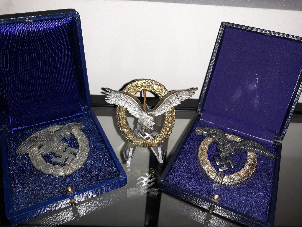 Flugzeugfuhrerabzeichen van B&N L , Beobachterabzeichen van Asmann en Doppelabzeichen Hybrid model.