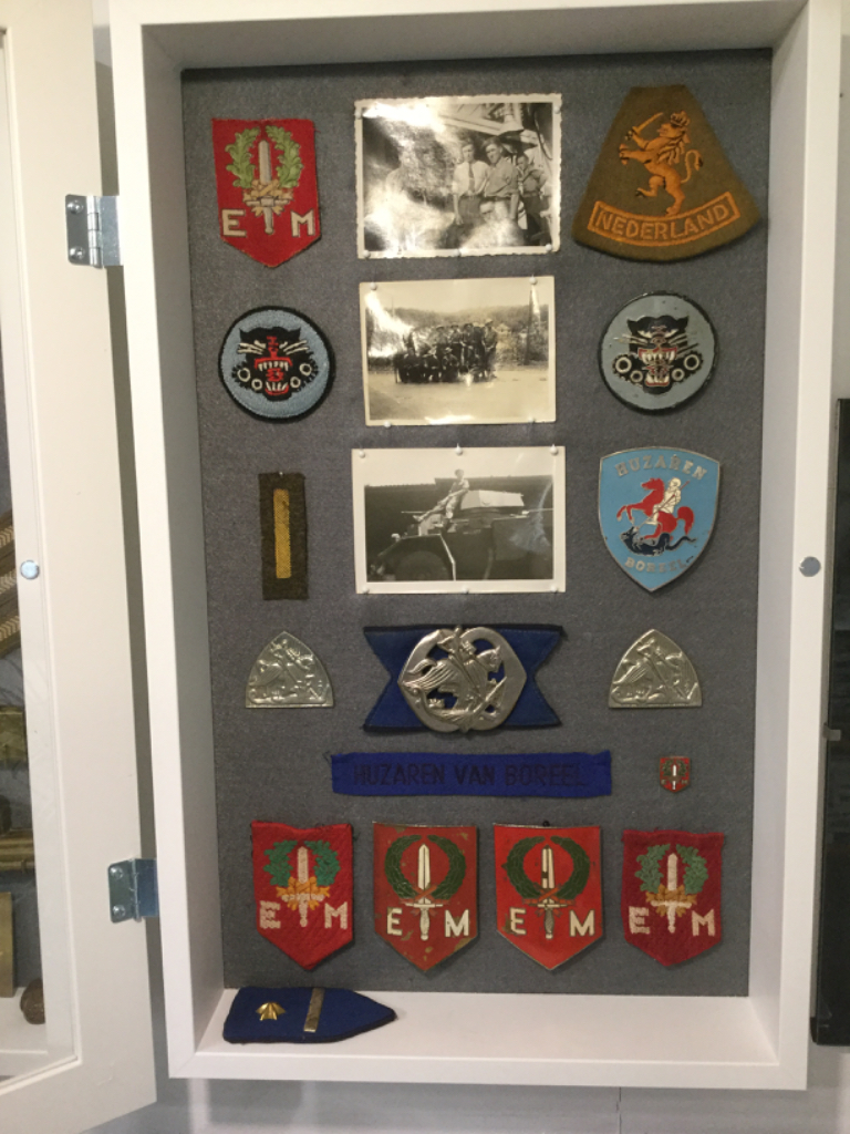 - stoffen em embleem en mouwleeuw (engelse aanmaak) die mijn opa droeg tussen zijn opleiding in Engeland als wachtmeester bij de Rata (kaderlid voor training dienstplichtigen in Ede)