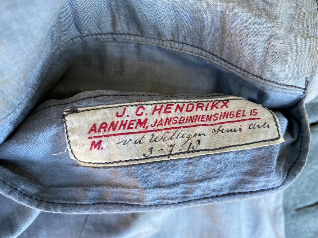 Het buiten model uniform van Pieter Johan van Veen, geboren op 6 november 1919 te Uithuizermeeden. Op 29 augustus 1939 in dienst gegaan bij de 7e compagnie 12e Depotcompagnie. Later bij de 4e compagnie. En op 10 mei 940 onder gebracht bij het 2-10e Grensbataljon. Wat als taak had de telefooncentrale in Wijk aan Zee te beveiligen. Deze lag aan de rand van stelling IJmuiden. HELAAS na mei 1940 omgebouwd tot zondagspak..