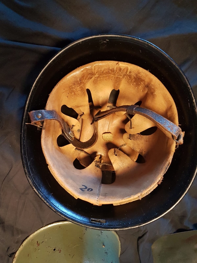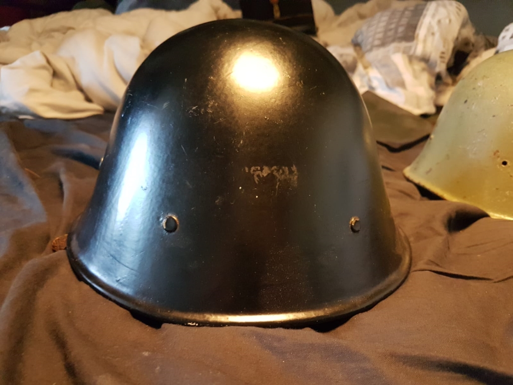 De zwarte is volgens mij een m27 model? Is dit een naoorlogse helm gebruikt door bijvoorbeeld de politie of de PTT?