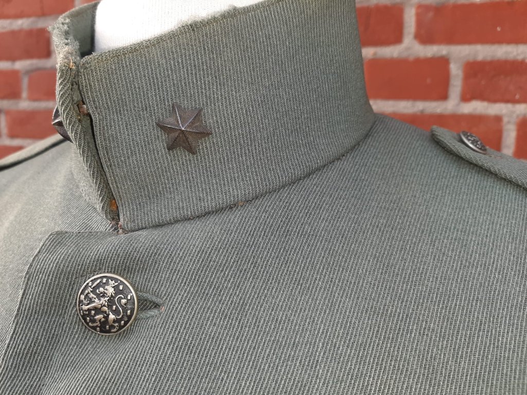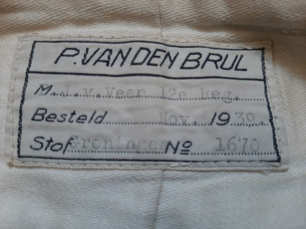 Het buiten model uniform van Pieter Johan van Veen, geboren op 6 november 1919 te Uithuizermeeden. Op 29 augustus 1939 in dienst gegaan bij de 7e compagnie 12e Depotcompagnie. Later bij de 4e compagnie. En op 10 mei 940 onder gebracht bij het 2-10e Grensbataljon. Wat als taak had de telefooncentrale in Wijk aan Zee te beveiligen. Deze lag aan de rand van stelling IJmuiden. HELAAS na mei 1940 omgebouwd tot zondagspak..