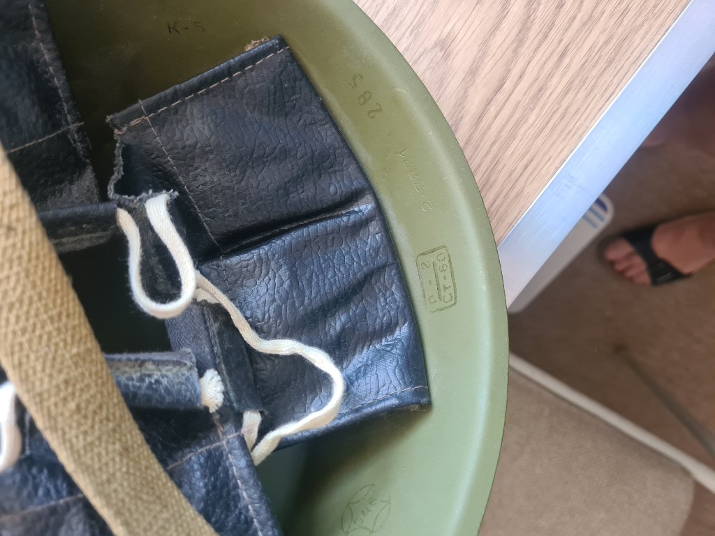 Helm 2 is een zg. M56/76 helm van het Oost-Duitse leger, de NVA. Deze werd vervaardigd bij Eisenhüttenwerk Thale in de voormalige DDR. Staat er geen code aan de binnenzijde van de helmschaal ingeslagen?