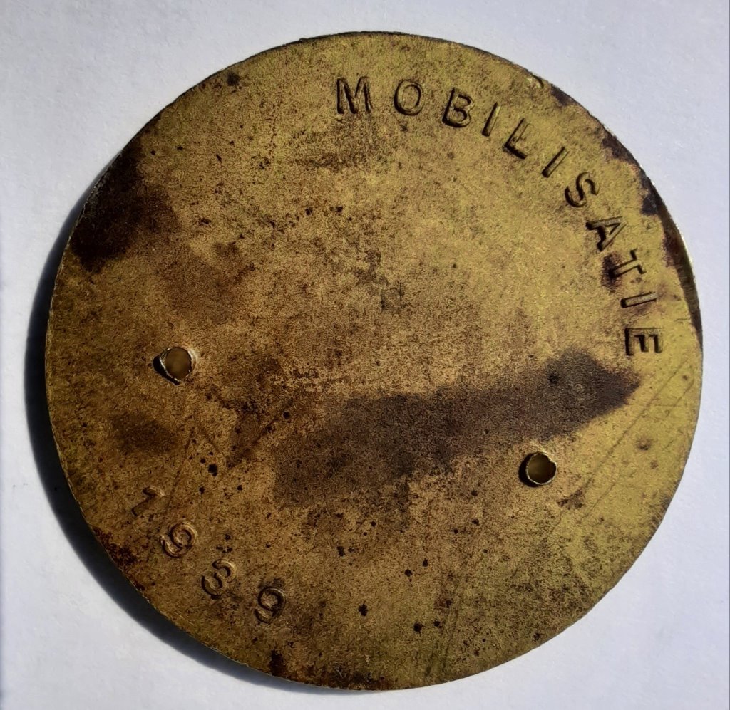 Ik heb een speld van ,,Nederland paraat,, met een gehelme soldaat en op de achterkant de tekst ,,mobilisaie 1939,, .