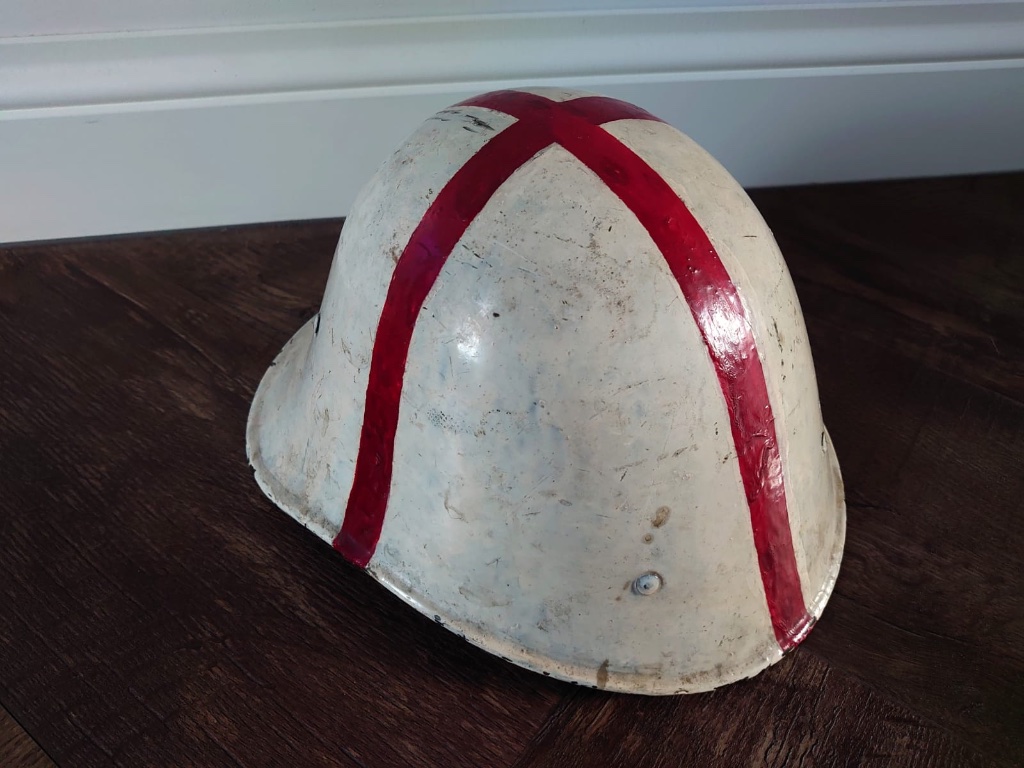 Die helm met rood kruis overdwars ken ik nergens van. Functie binnen de LB of een wat onkelig uitgevoerde rode-kruishelm? Weet jij het?