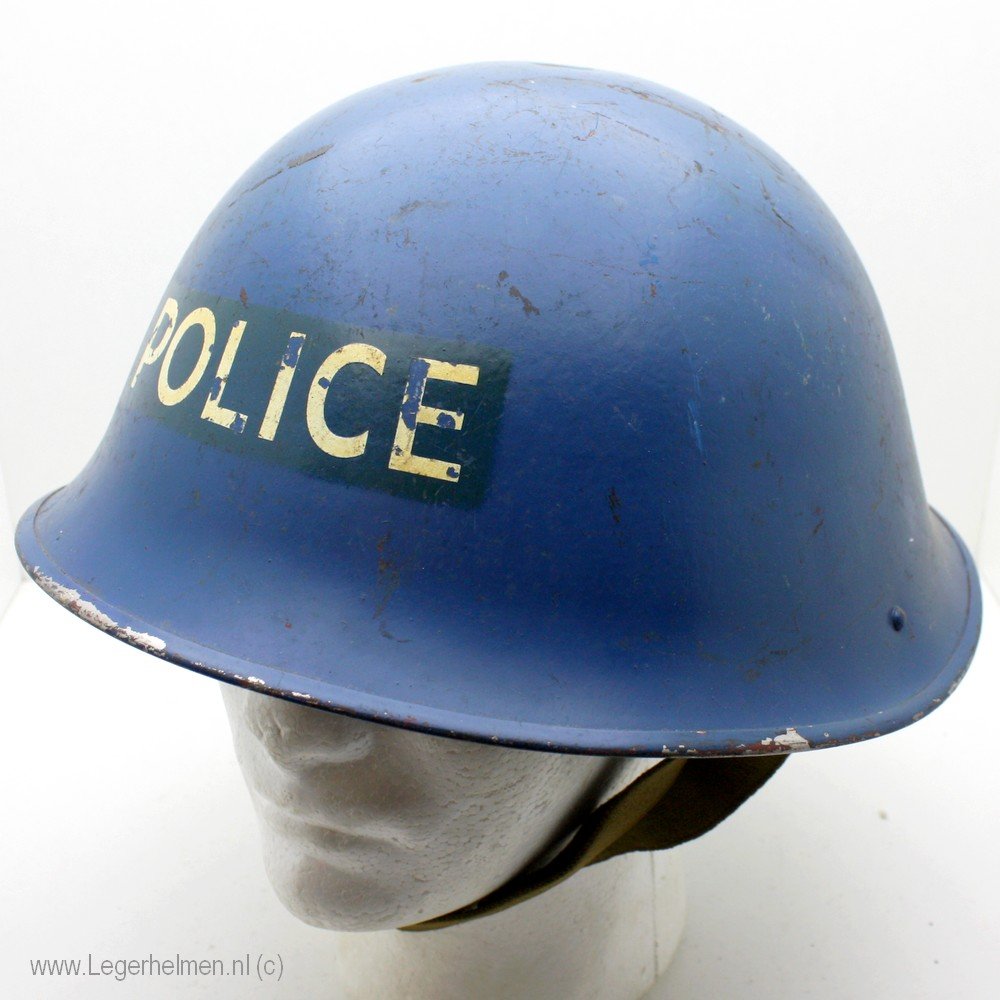 In de jaren vijftig begon het er op te lijken dat een conflict met de oosterburen in Rusland niet ver meer was. Als voorbereiding werd uit de oude legervoorraden alvast nieuwe helmen gemaakt voor een politiemacht in geval van een conflict. Stemmig blauw gespoten om duidelijk te maken wie bij de politie was. Ook stond dat duidelijk op de voorkant van de helm. Ze zijn waarschijnlijk nooit uit de opslag gekomen maar vertegenwoordigen toch weer een stukje geschiedenis van net na de tweede wereldoorlog. De modellen en voeringen zijn soms verschillend zo heb ik een zwarte (Engels) en bruine (België) in mijn verzameling. Niet zo spannend als een verroeste helm met battle-schade maar toch verzamelbaar.