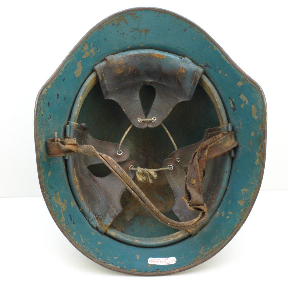 Wat ik weet is dat de blauwe helm nooit gebruikt is en van restbestanden is samengesteld. Het zichtbare verschil bij de Brodie is de kleur van de voering. Daar ben ik maar van uitgegaan. Is verder geen info over te vinden. Ik heb een blauwe uit Engeland, die had een bruine voering en een zwarte voering kwam uit Frankrijk. Helaas ben ik geen kenner en haal al mijn info van het internet, soms tot grote ergernis van mede verzamelaars. Maar ik ben net begonnen. Ik dacht dat de Mark V eigenlijk niet officieel bestond. Die naam is gegeven aan een Mark IV met aangepaste liner. De helm is verder gelijk. Hieronder een plaatje van de voering van een Mark V of dus eigenlijk IV.