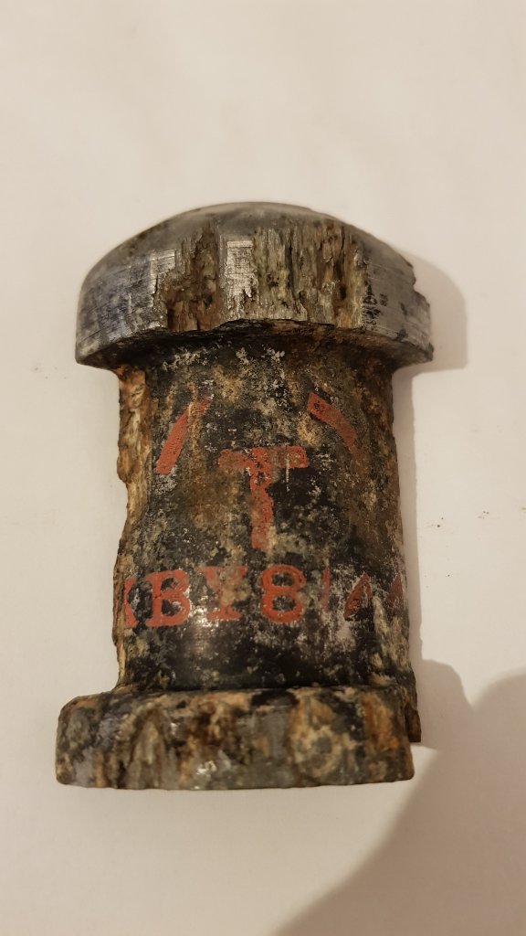 Interessant stukje laat je zien! Het wordt voor onze munitiemensen nóg interessanter als je er zaken bij vermeld als lengte, breedte, teksten die er op staan, waar het van gemaakt is e.d. De kans op positieve identificatie wordt dan groter en dat is wat we willen natuurlijk!
