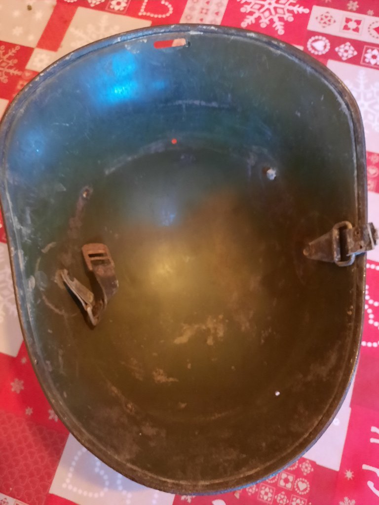 Welkom op het forum. De helm op de foto's is een M27. De helm lijkt mij aan de buitenzijde zwart overgeschilderd te zijn geweest. Dit zou er op kunnen duiden dat de helm na de Nederlandse capitulatie in mei 1940 bij hulpdiensten terecht is gekomen. Meestal werd dan ook de helmplaat verwijderd.