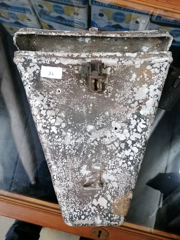Je driehoekig ballkan achtig ding is een behalter voor de entfernungsmesser draagstel. In wat betere staat een erg leuk ding. (je ziet nog deels de camouflage verf).