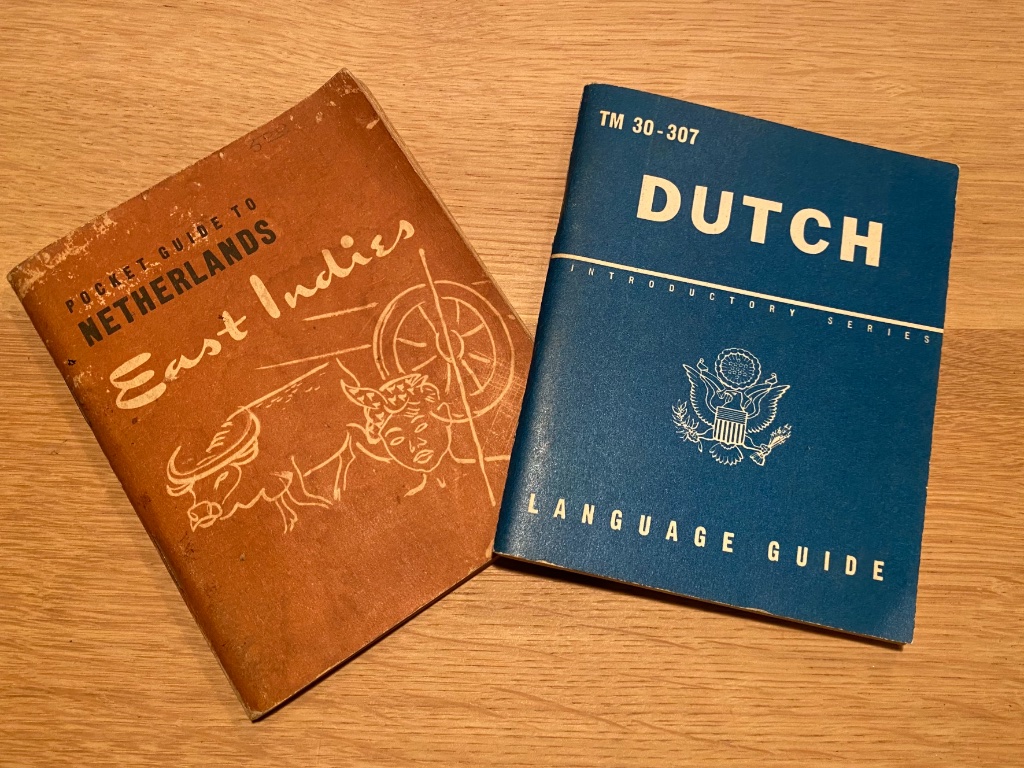 Iedereen kent de language guides wel die de Amerikaanse soldaten uitgedeeld kregen tijdens de oorlog. Ik kon de Dutch language guide en de Dutch phrase book al, maar deze kon ik nog niet! Pocket guide to Netherlands East Indies.