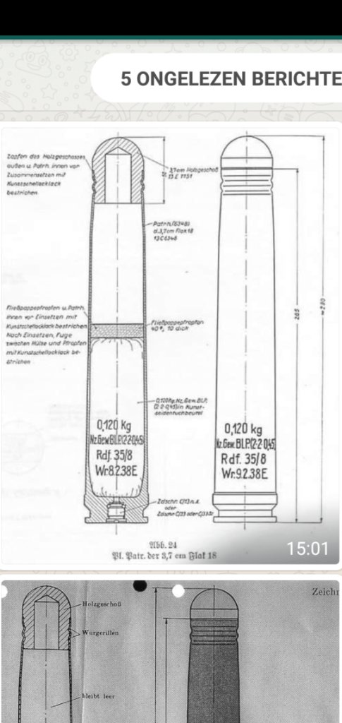 Platz patronen zijn oefenpatronen. Ik heb ze wel eens kleiner gezien van de K98/MG42 en de 2cm Flak. Beiden met houten kop. Of dat ook geldt voor de 3.7cm, durf ik je niet te bevestigen. Het ziet er wel legitiem uit met die stempel. Zit er een afwijkende primer/ontsteker in de huls gedraaid?