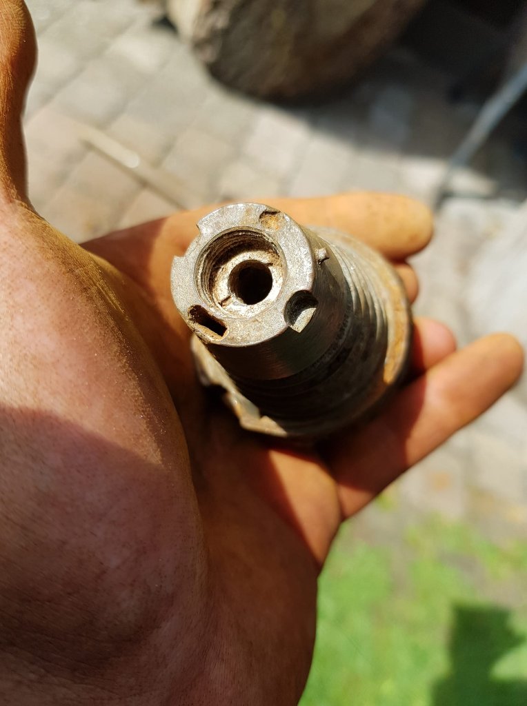 Lijkt me gewoon messing en compleet hoort er nog een messing kap overheen.