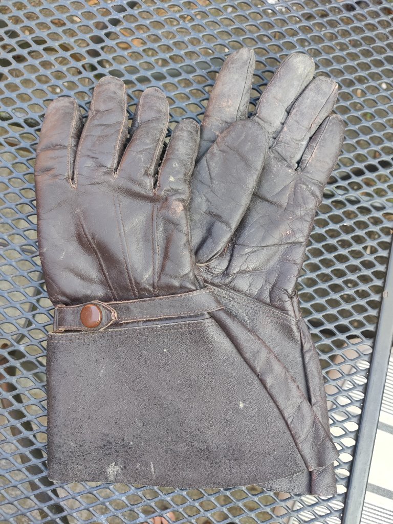 Kleine update: de handschoenen die hier boven ook op de foto staan, blijken geen motordienst - maar Luftwaffe piloten handschoenen! Geïdentificeerd dankzij de Stocko drukknopen en lamswollen voering! Waarschijnlijk gaat dit paar dan ook naar een museum, hopelijk in ruil voor iets anders moois