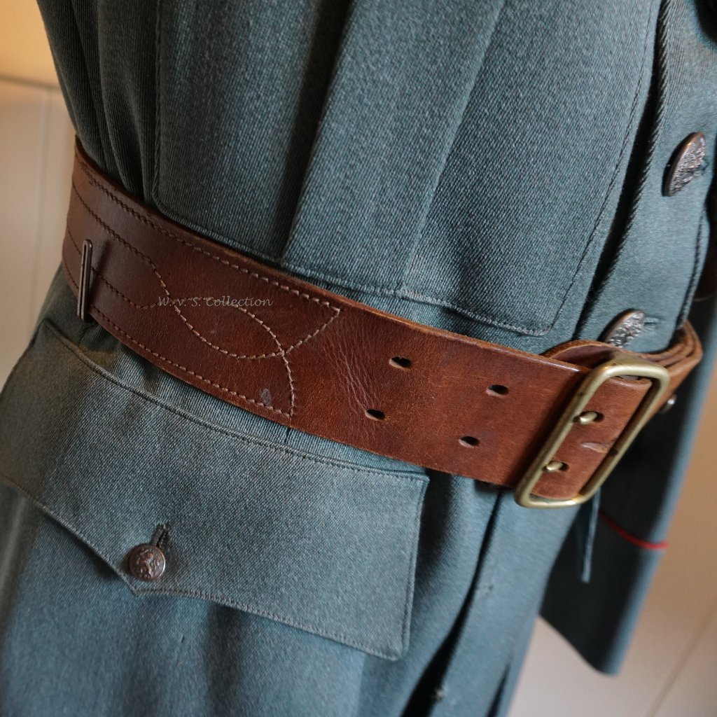Neemt niet weg dat er toch iets te melden valt. Ik heb al een enkel jaartje een jas in mijn bezit, welke na het doorspitten van mijn eigen draadje, nooit echt onder de aandacht is gekomen. Waarschijnlijk is ie wel een keer op een groepsfoto voorbij gekomen. Het betreft een buitenmodel jas van een (reserve)officier voor speciale diensten der Artillerie. Te herkennen aan de blauwe vilten kraagstukken. De zogenaamde "vlaggen". De jas is op naam van ene heer Pabbruwe. Helaas niets over deze persoon kunnen vinden. In ieder geval was hij 2e (res.) luitenant in Oktober 1936 zoals op het label is af te lezen. De jas komt uit het kleding atelier van de fa. H.W. Blomjous uit den Haag.