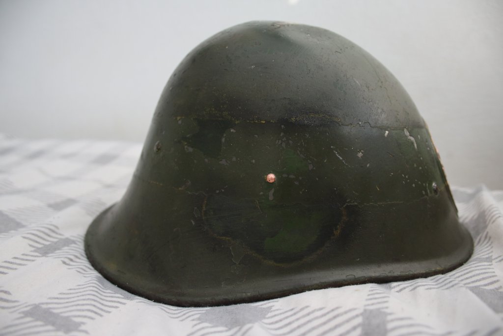 De gekleurde helm is daarentegen van binnen weer heel mooi. Als ik het goed zie staat er ergens heel erg vaag 1938 gestempeld.