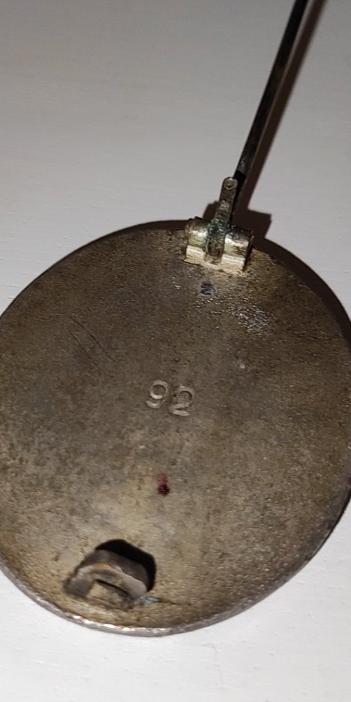 Mm 92, Josef Rucker & Sohn denk? Maar ik kan het ook niet duidelijk zien. Latere zilveren uitvoering in zink. Maar de foto's moeten veel beter om een goed oordeel te vellen. Magnifier app op je telefoon zetten en zonder flits in daglicht een rechte foto van de voorkant, één van de achterkant en één met de geopende pin van het merk, dat maakt het makkelijker te vergelijken. Goede close-ups maken.