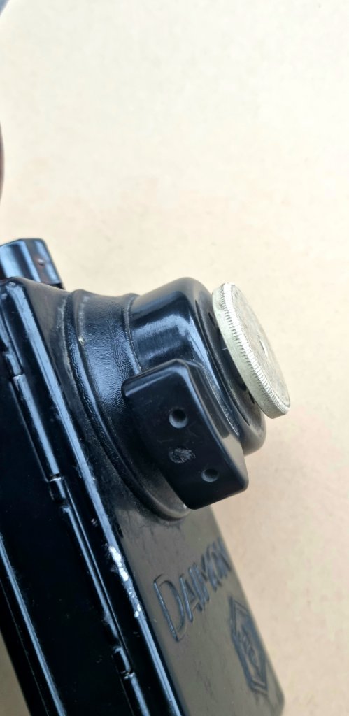 New in my collection this peculiar Daimon piece which suffered a manufacturers modification so that it would serve a civilian role in cleaning fabrics (stoff) or other garments via a rotating/vibrating head powered either by 4.5 volts battery or via electrical cord.