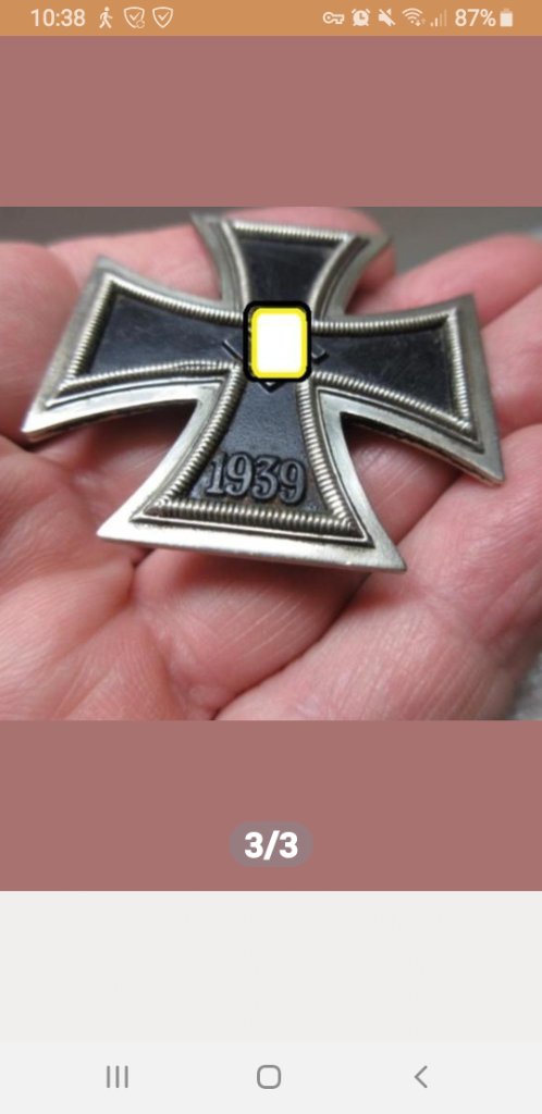 Klinkt als een redelijke deal voor een EK1 tegenwoordig, is echter een gevalletje flessentrekkerij. Dit is één van de beruchte Floch reproducties en vanwege de luchtige beschrijving denk ik dat de verkoper dat donders goed weet. De vervaardiger heeft ze altijd als reproductie verkocht op grote beurzen, de kopers hadden/hebben echter minder last van een slecht geweten. Floch maakt hele goede repro voor reenacting of verzamelaars die een goede reproductie in een uitstalling willen laten zien. Maar het blijft naoorlogse namaak zonder historische waarde.