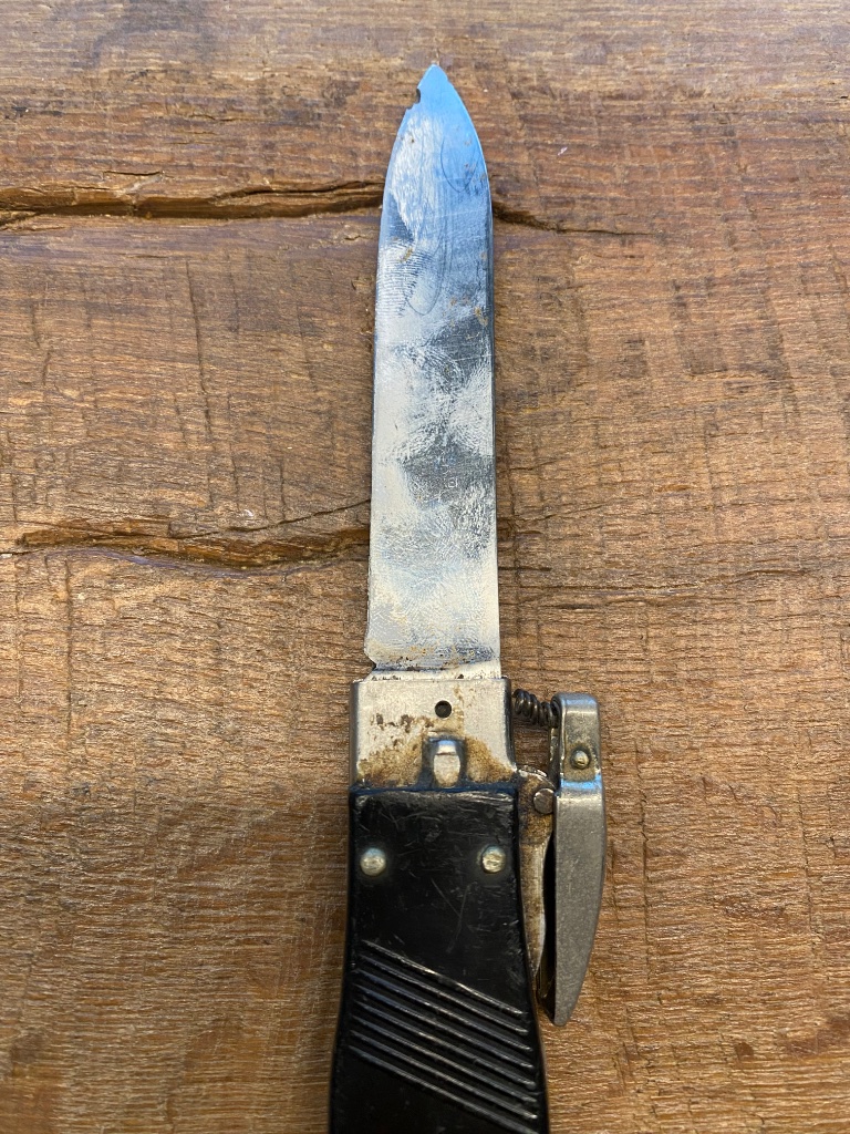 Het eerste mes is een Fallschirmjäger-Kappmesser der Bundeswehr model 1957. Leuk mes, ondertussen ook niet zo vaak meer aangeboden. Wettelijk gezien is een valmes denk ik niet toegestaan in NL, maar FJ messen zijn geliefd bij verzamelaars. Vooral de oorlogsexemplaren.