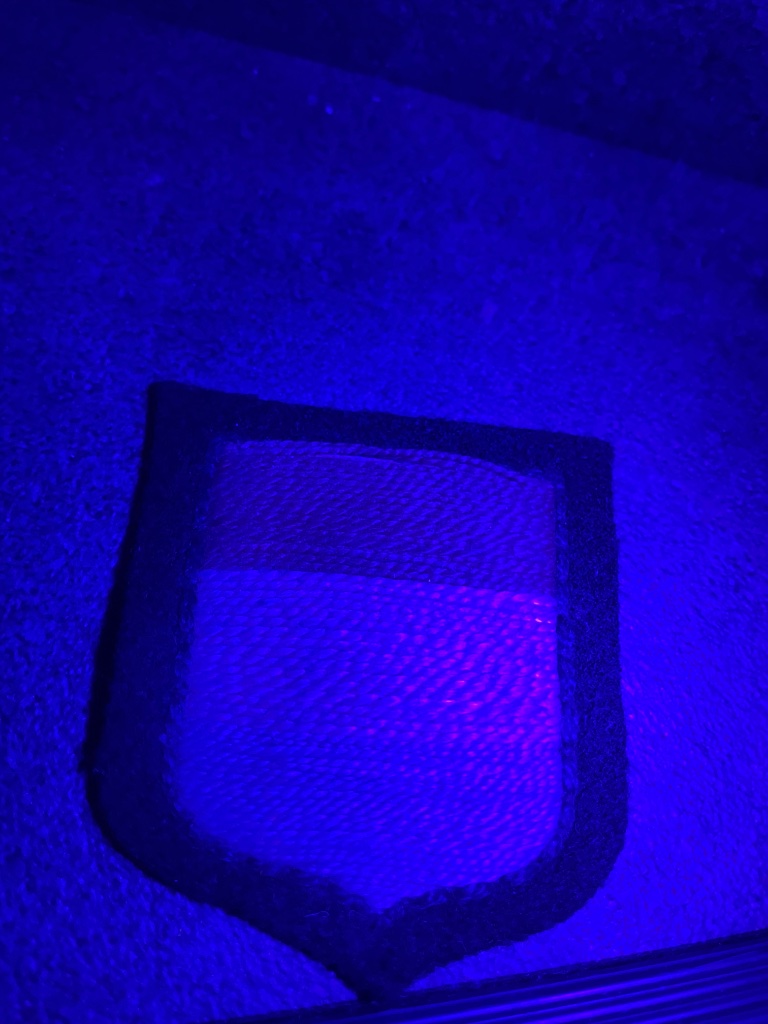 Ik heb er ook niet helemaal een goed gevoel bij. Er is variatie in de eerste modellen vanwege locale en handaanmaak en volgens mij is er nooit een mooie tijdlijn van alle modellen en varianten in kaart gebracht. Maar wat ik bij dit model opmerkelijk vind is dat het eigenlijk het bekende, late 'Dachau' model is met het puntje onderaan in het midden, maar met de vroege, grove wollen draden. Volgens mij was het Dachau model het eerste model dat deze vorm had, terwijl de eerdere modellen puntige, of ronde onderzijden hadden. Het leest wat krom wat ik tik, maar je begrijpt me vast. Heb je een UV lamp bij de hand? Als de witte draden sterk oplichten weet je vrij zeker dat het naoorlogs materiaal is. Als het licht dood slaat heb je nog niet echt zekerheid, maar wel meer zekerheid. UV is verre van waterdicht als testmethode, maar het helpt wel wat.