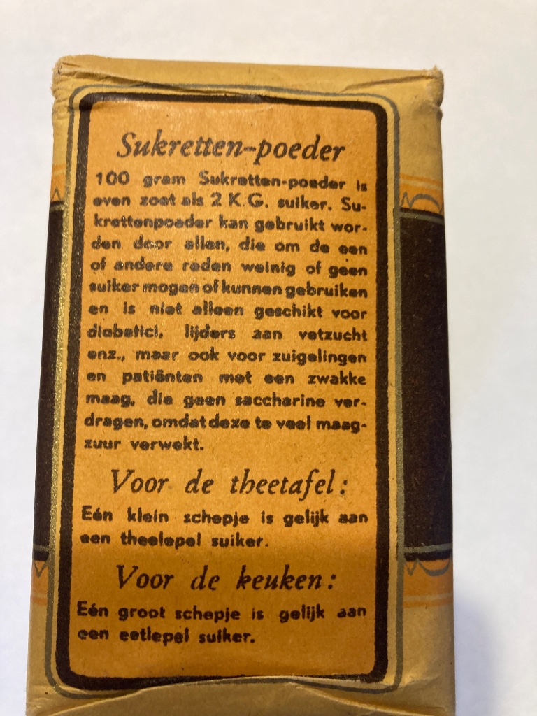 Deze noodverpakking suiker uit 1943 op de beurs gekocht.