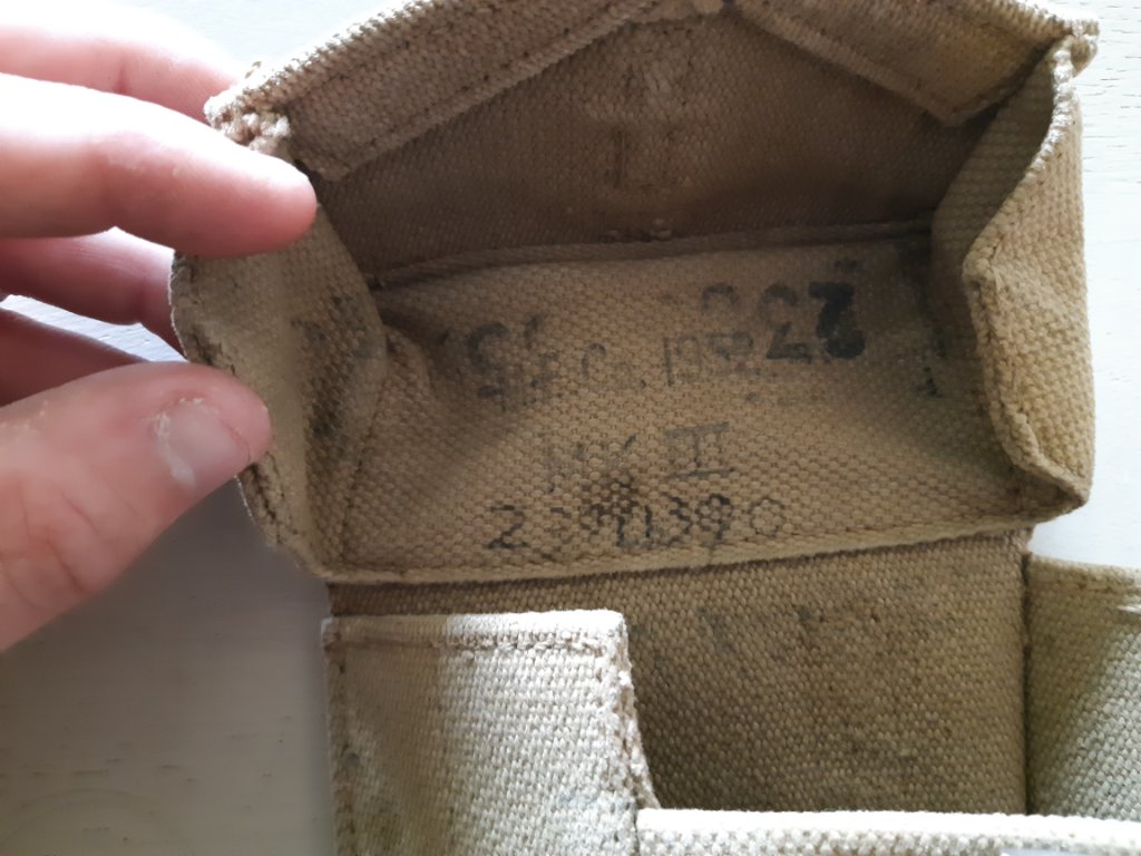 Basic pouch, vaak foutief Bren magazijn tas genoemd. Per 2 op de torso gedragen. Lang na de oorlog doorgebruikt, deze lijkt 1952 gestempeld?