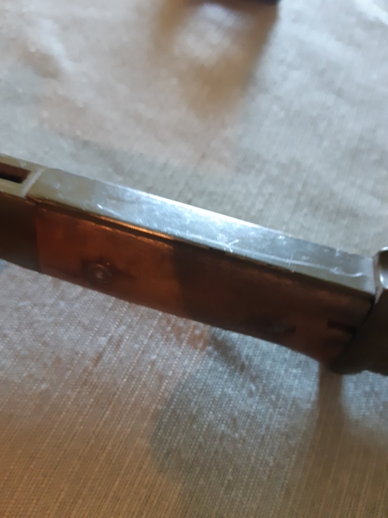 Heb hier een k98 bajonet in nette staat. Het enige is dat iemand hem ooit met groene verf behandelt heeft, en ook nog niet heel netjes. Ik zou graag die groene rommel verwijderen maaaaar..... natuurlijk zonder de orginele te beschadigen. Iemand enig idee waarmee dit het beste/handigste voor elkaar te krijgen?