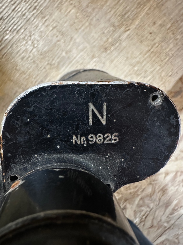 Duitse Kriegsmarine kijker met gasmasker oculair, gebruikt op aan/op de Noordzee-vloot gezien het N nummer.
