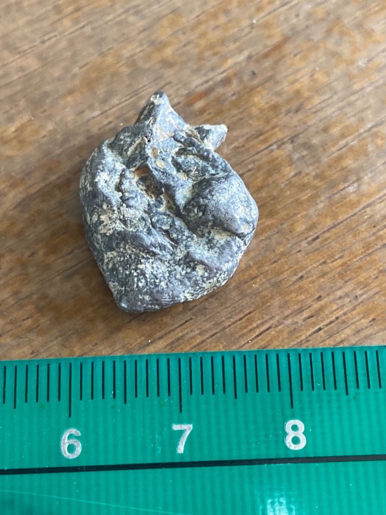 Het voorwerp is denk ik van lood, weegt 10 gram.