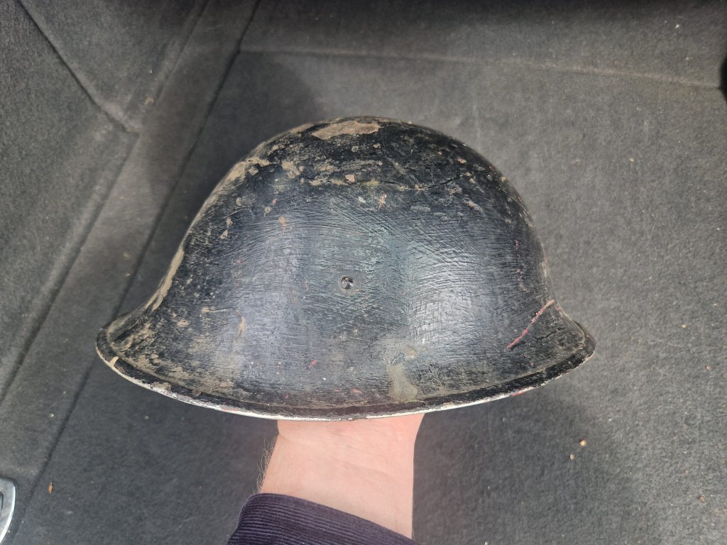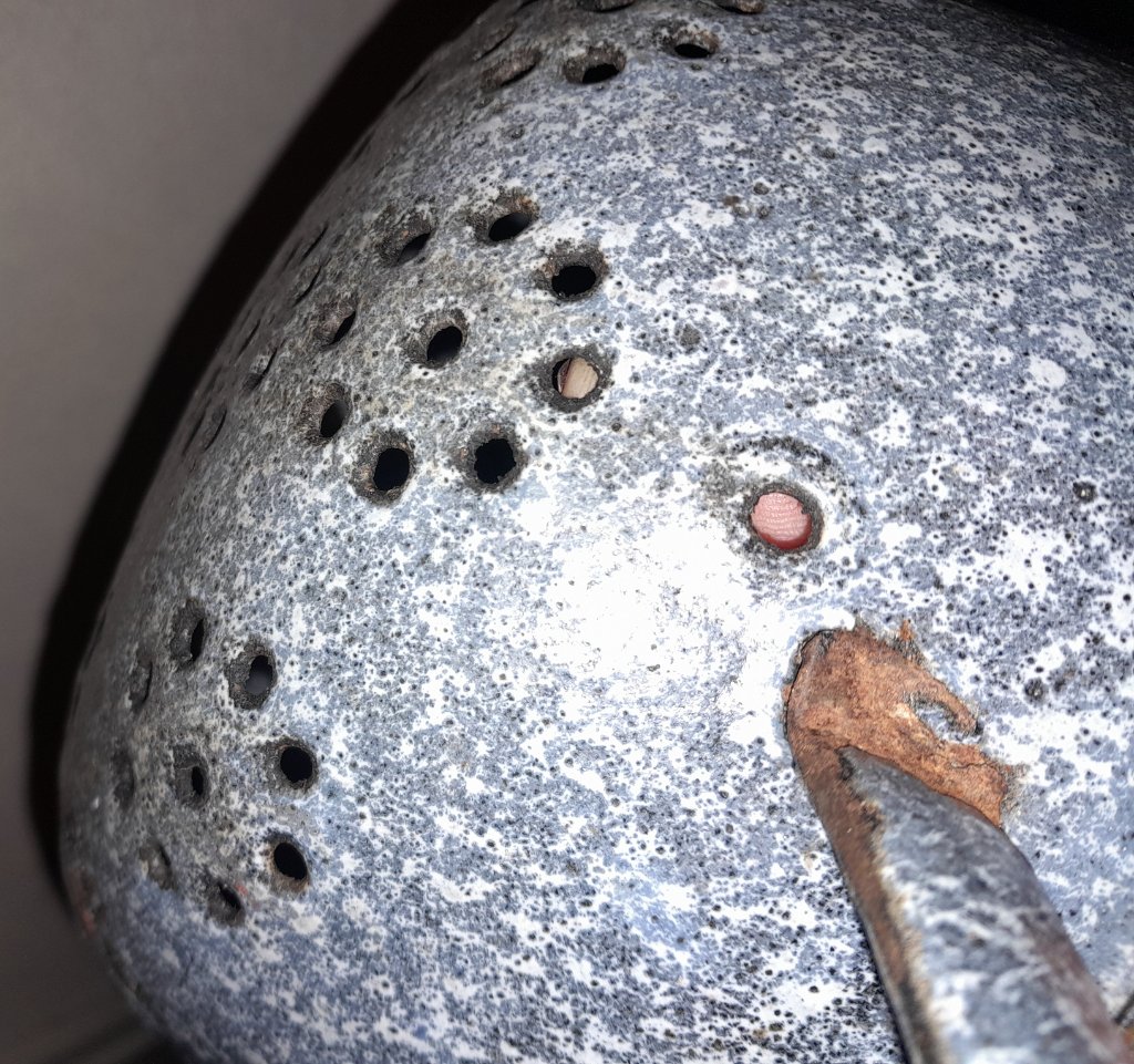 Mooi vergiet, heb volgens mij zo'n zelfde in de schuur hangen. Was helaas geen refurbished Duitse helm. Of was dat niet de insteek van de koop Patrick?