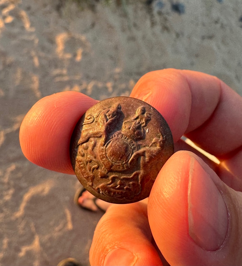 Deze knoop heeft mijn zoon gevonden op het strand van Normandië. Weet iemand waar deze knoop toebehoorde?