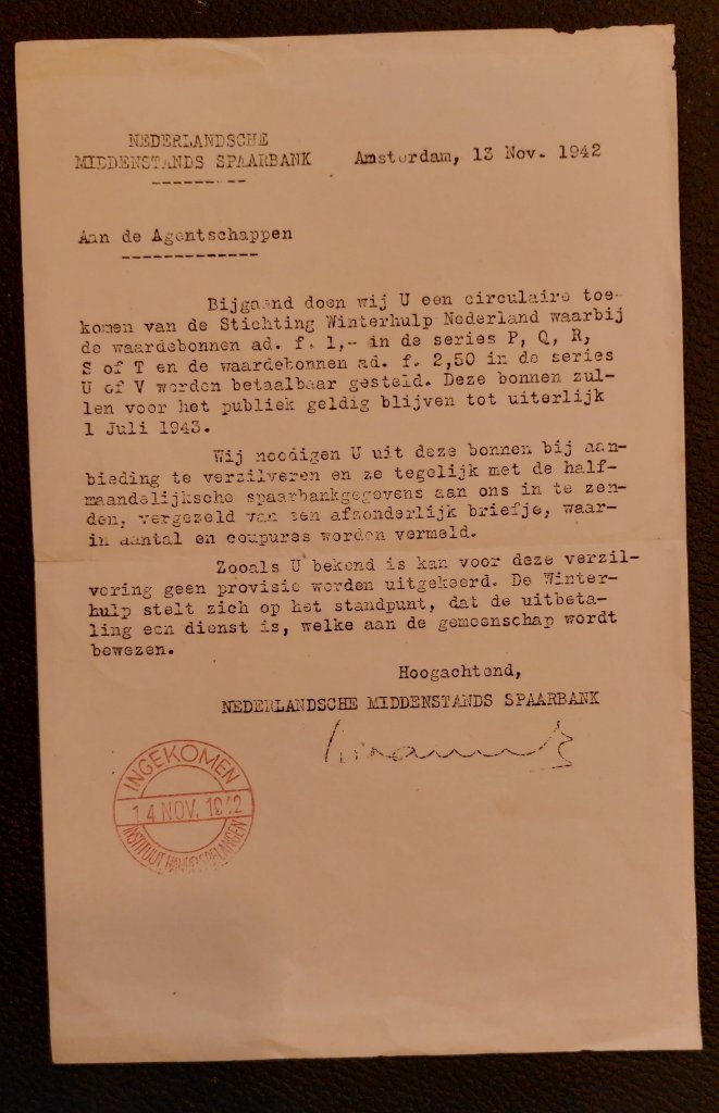 ‐--------------------------------------------------------------------------------‐-------------- Document voor specimen waardebonnen 1942/1943 's-Gravenhage