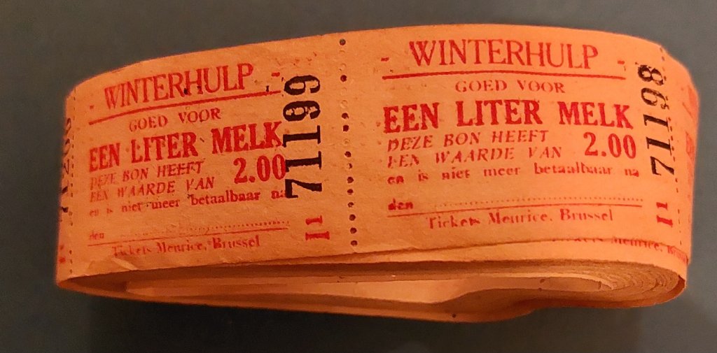 Een rol Winterhulp voedselbonnen voor één liter melk.