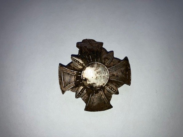 Ik meen op de derde foto in de cirkel, midden op de voorzijde van het kruis, een duif te herkennen. Mogelijk is het kruis een prijs in de duivensport.