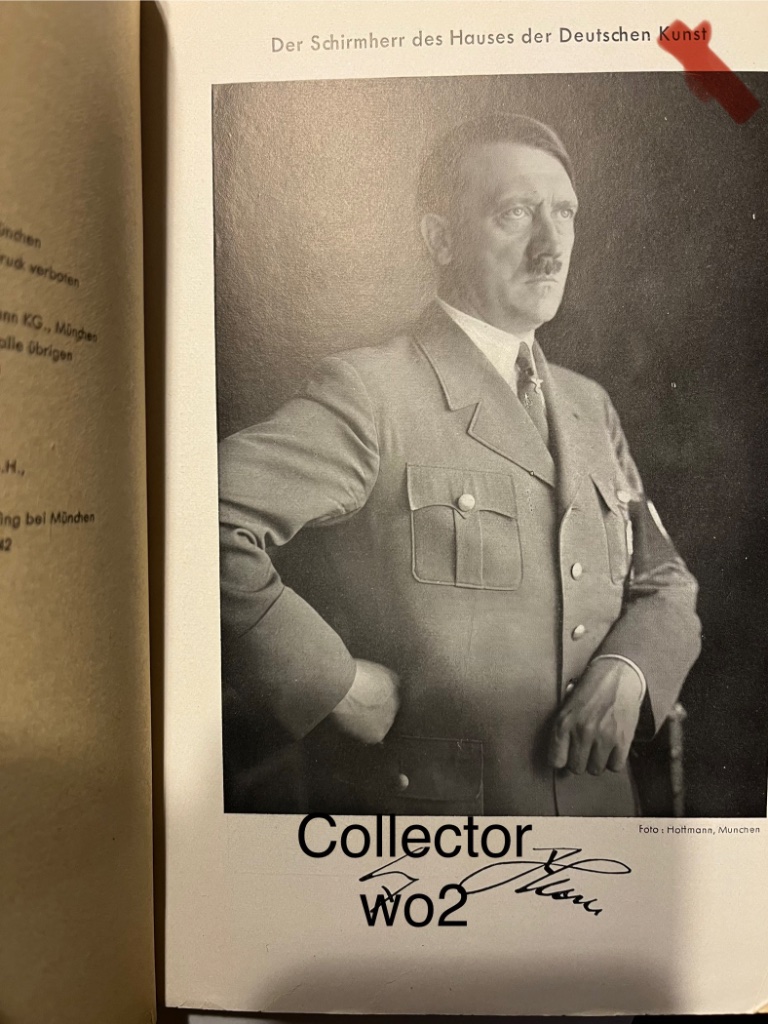 1 verduisterd fietslampje en een catalogus duitse kunst 1942 met entreekaartje erbij.