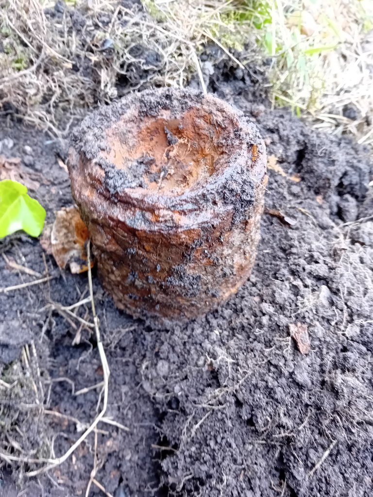 Ik heb dit ding gevonden alleen. Heb ik geen idee wat het is. Het lijkt mij een rook pot van een 25ponder alleen weet ik dit niet zeker. En ik denk ook niet dat deze schadelijk kan zijn alleen toch maar even laten liggen. Kan iemand deze 2 dingen bevestigen?