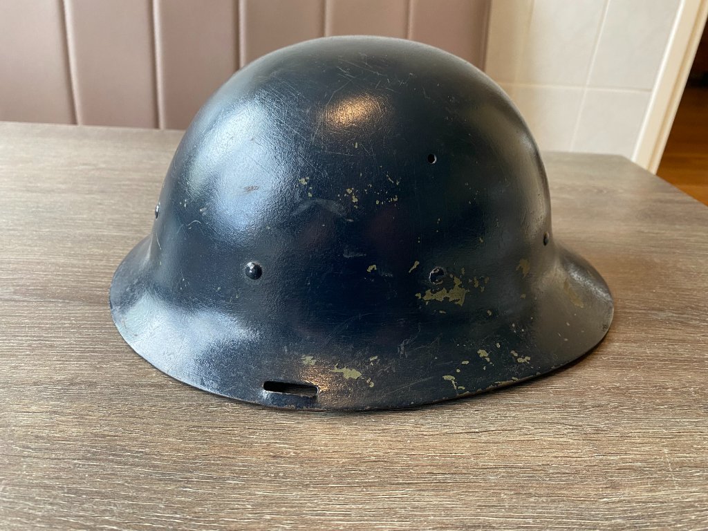 Ik heb een Nederlandse M16A helm die in donkerblauw is overgeschilderd; misschien van de Karabijnbrigade?