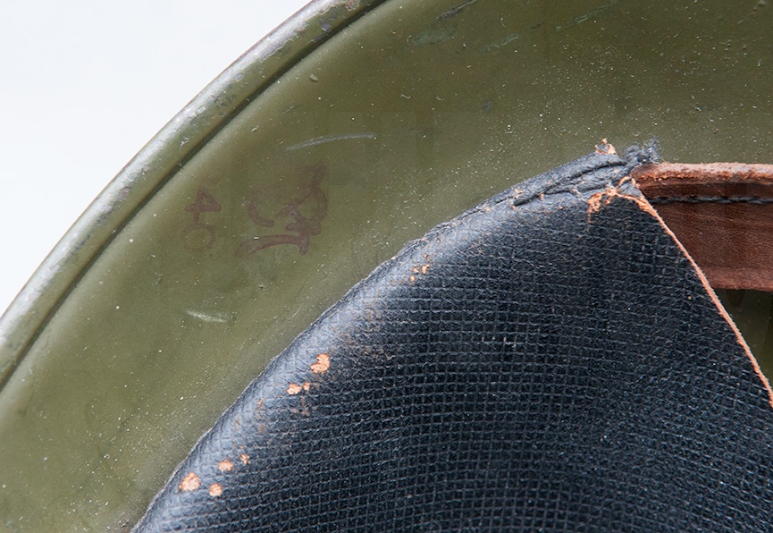 Jammergenoeg is de helm niet voorzien van een naam, legeronderdeel o.i.d. De helm is in een mooie staat wat kan betekenen dat de helm niet lang dienst heeft gedaan. Na mei 1940 meegenomen naar Duitsland, daar op zolder beland en vergeten.