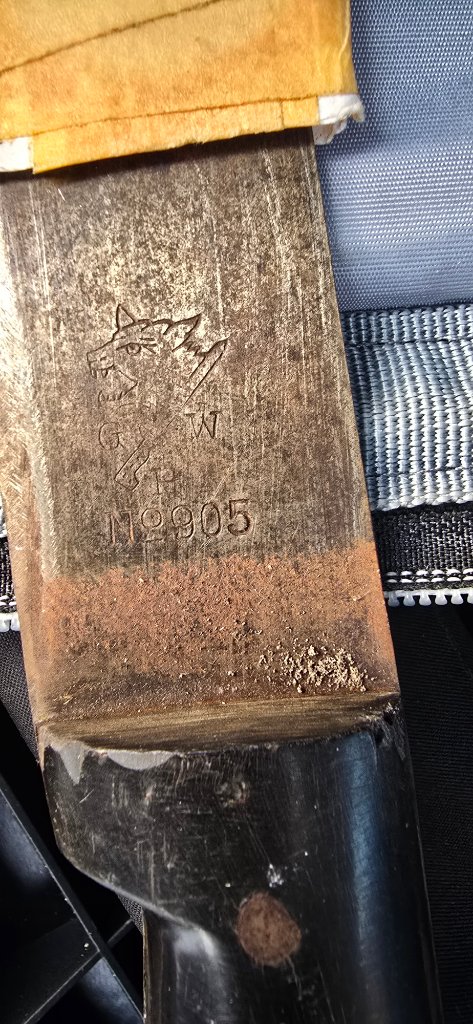 Hopelijk weet iemand ook nog iets over de andere machete met de gravering van de wolfs kop met nummering
