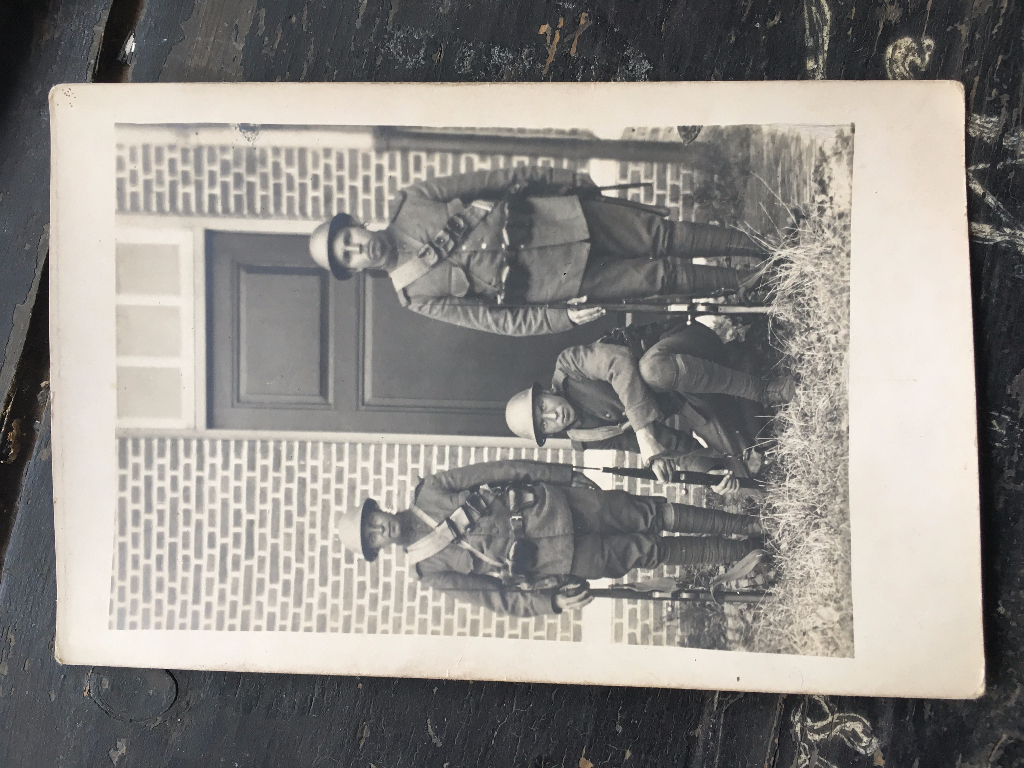 Interessante objecten die oorlogszakboekjes en foto's. Vooral de foto waarop ook een Eijsink motorfiets te zien is. Je vraagt je af of dat nu zo makkelijk rijden was met zo'n zwaar Schwarzlose machinegeweer voor je stuur. Je zou maar plotseling moeten remmen.