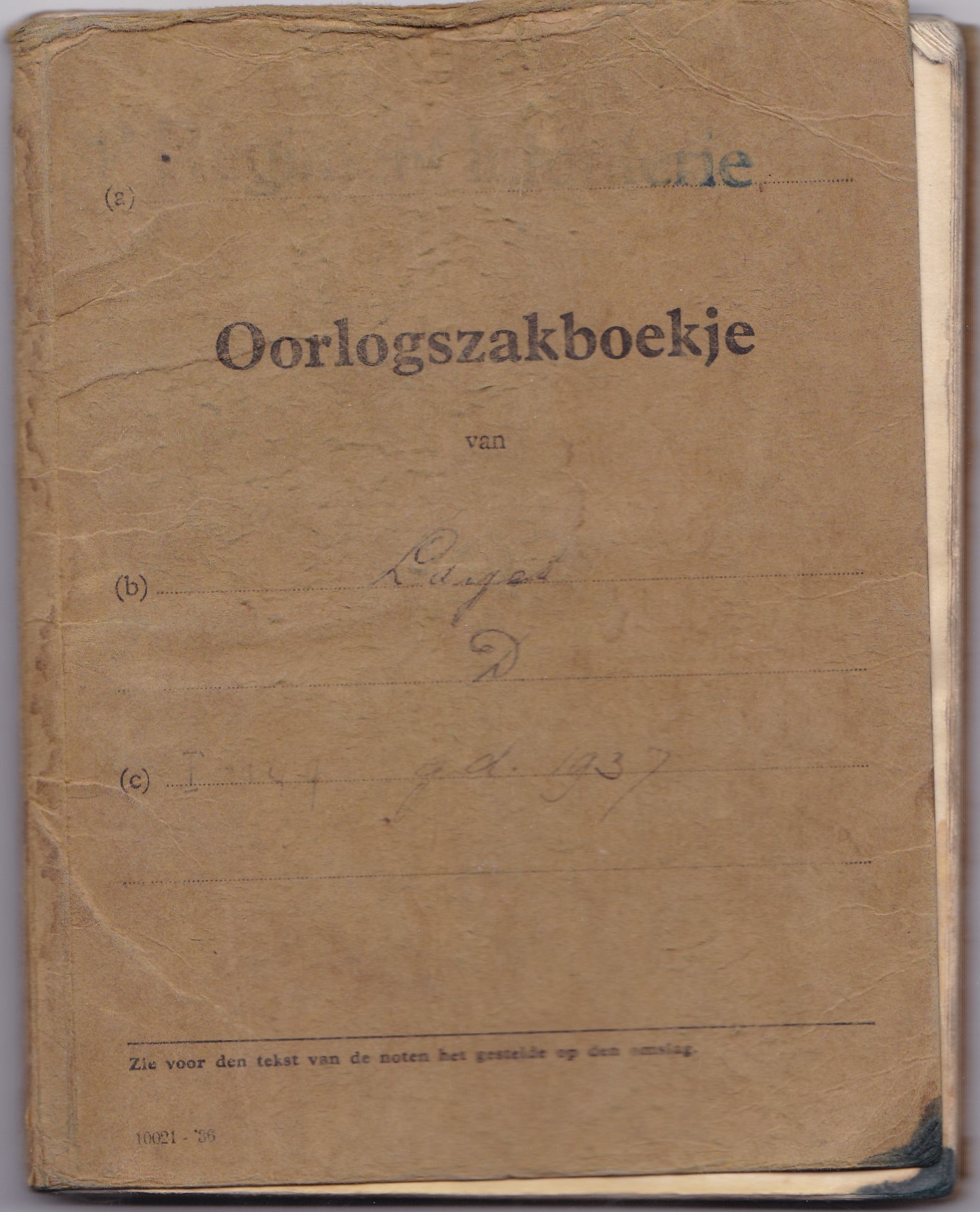 - Oorlogszakboekje met plaatje van een wachtmeester van 4RVA