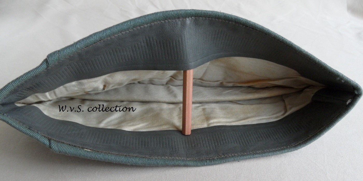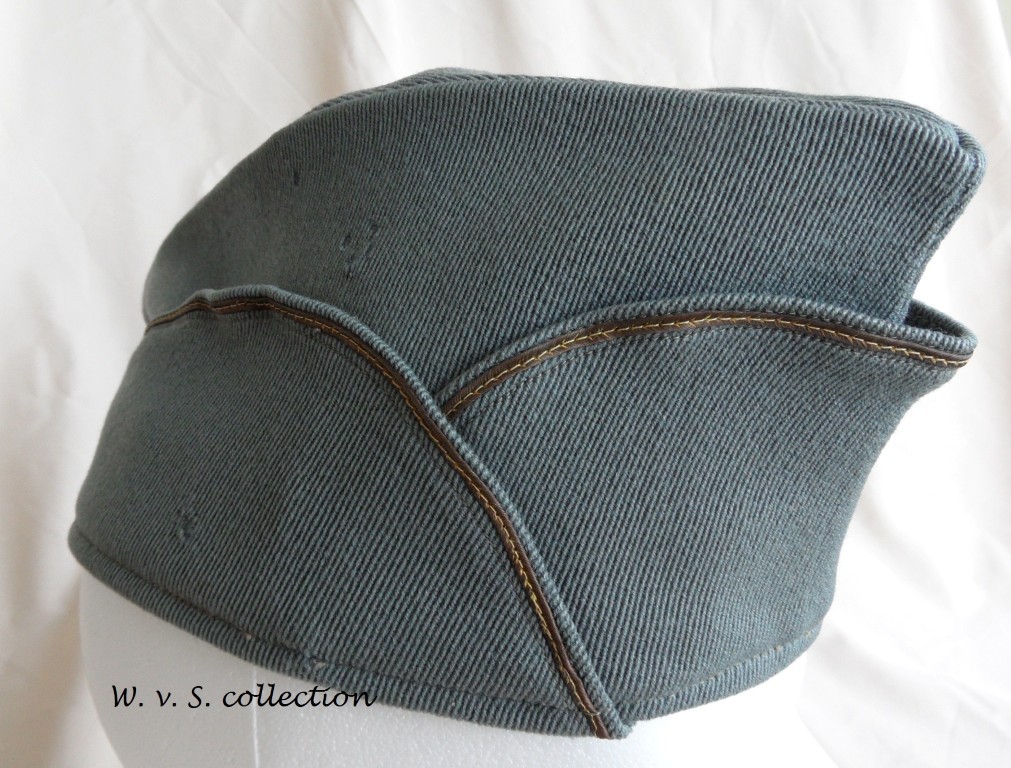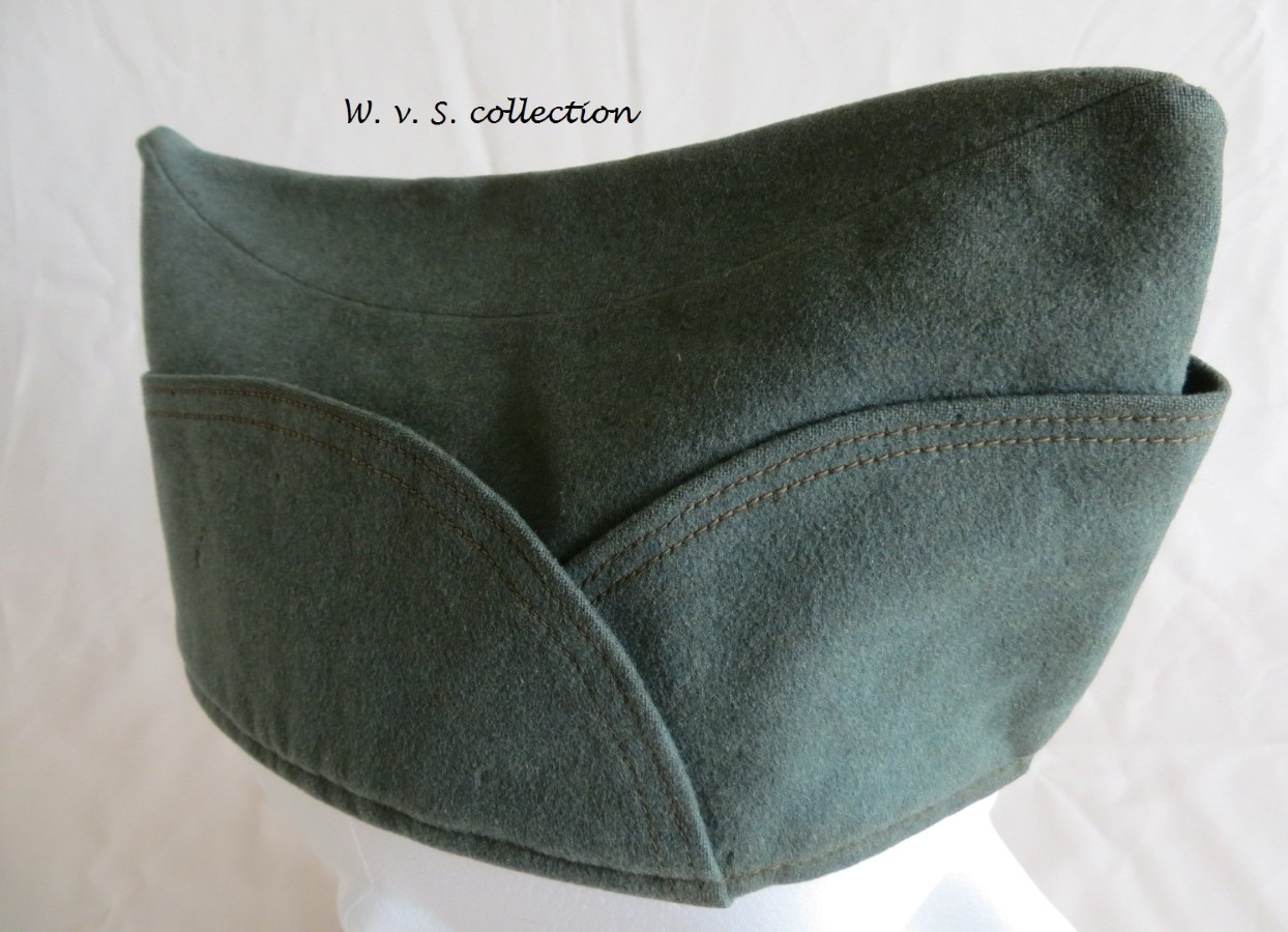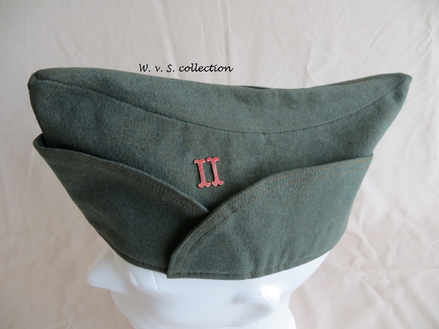 Veldmuts van een officier. Hele lichte motspoor op de zijkant. Geen regimentsnummer of leeuwtje, maar wel binnenin met blauw geschreven PT I VIII