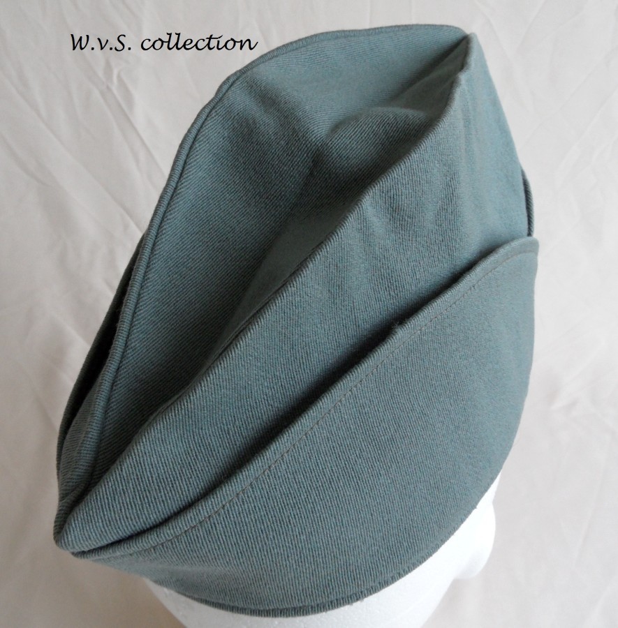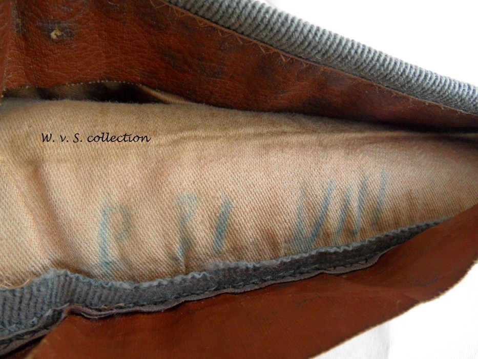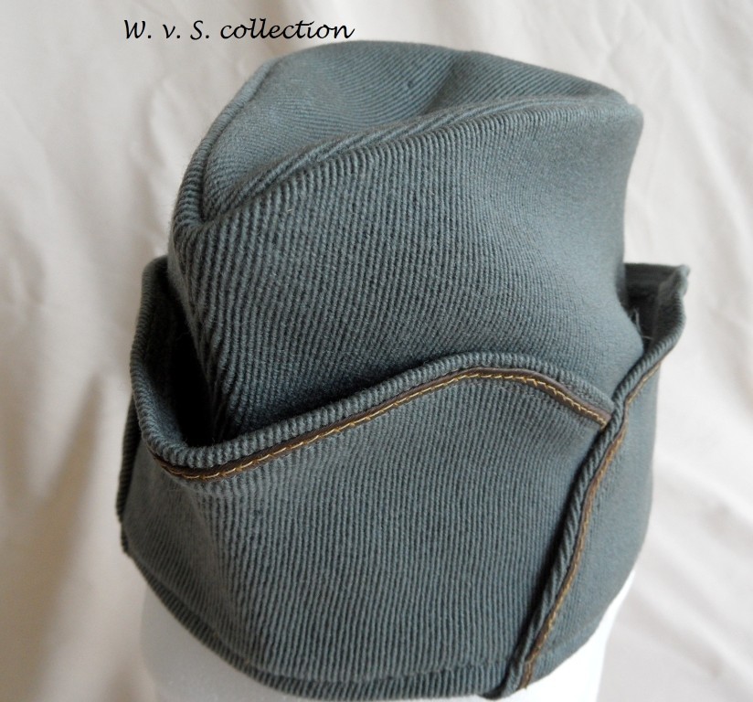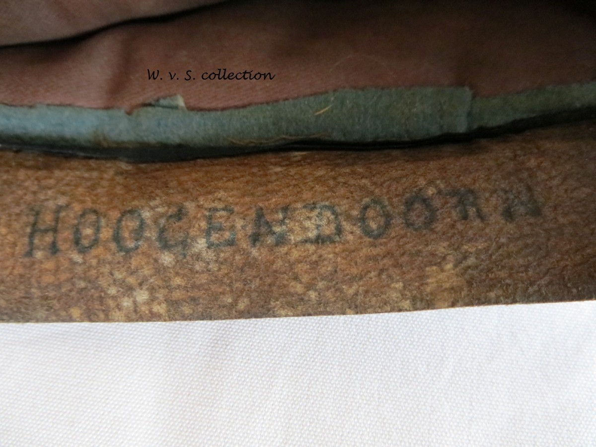 Veldmuts van een officier. Hele lichte motspoor op de zijkant. Geen regimentsnummer of leeuwtje, maar wel binnenin met blauw geschreven PT I VIII
