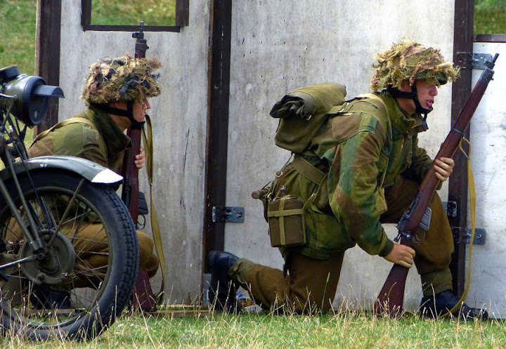 Uitbeelding als Nederlandsch motor ordonnans tijdens de mobilisatie 1939-1940 op Hoeve de Beek in Woudenberg.
