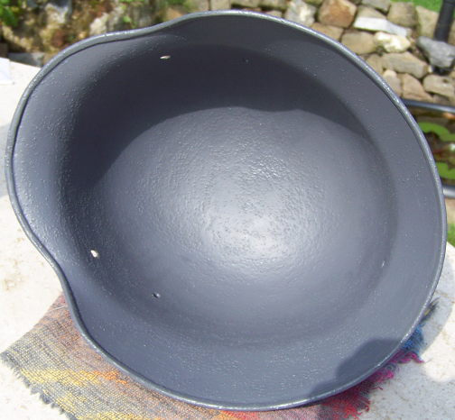 Zo dit is de helm geschilderd in RAL 7015, matte verf op olie basis.