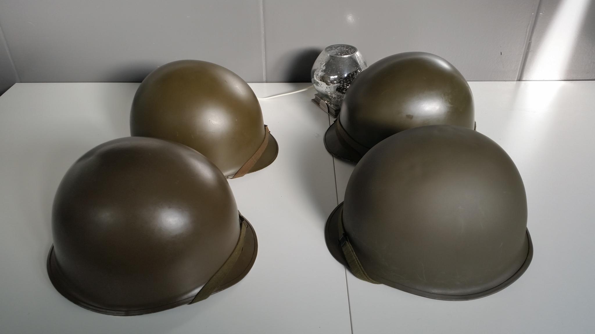 Ik heb een stuk of 7 m53 helmen allemaal verschillende binnen en buiten helmen qua datum verschillend van 1955 tot 1989 .