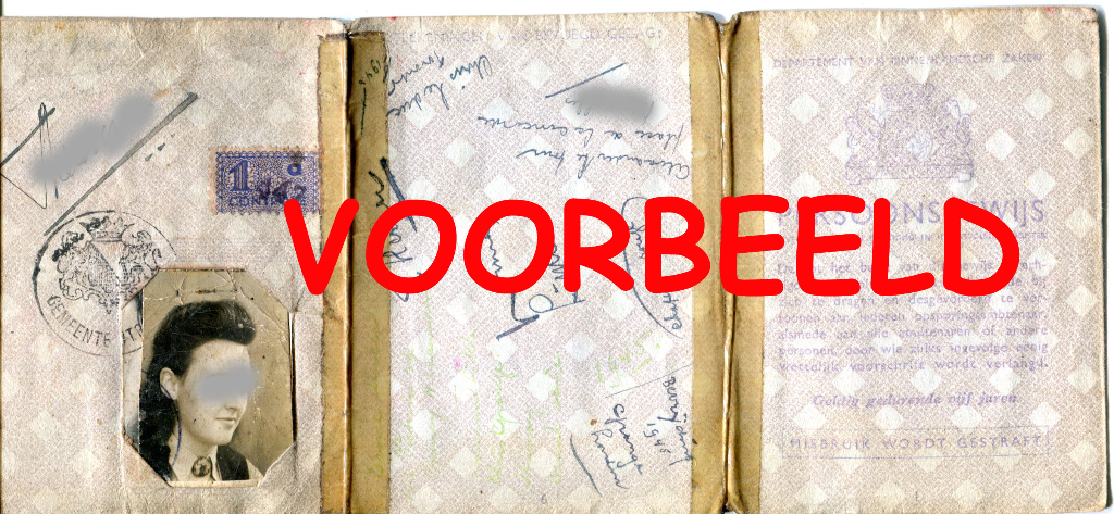 In een doosje gevonden een tweetal Persoonsbewijzen afgegeven in de Gemeente Utrecht en een zestal Distributiestamkaarten verder nog wat documenten en veel losse zegels en zegelvellen