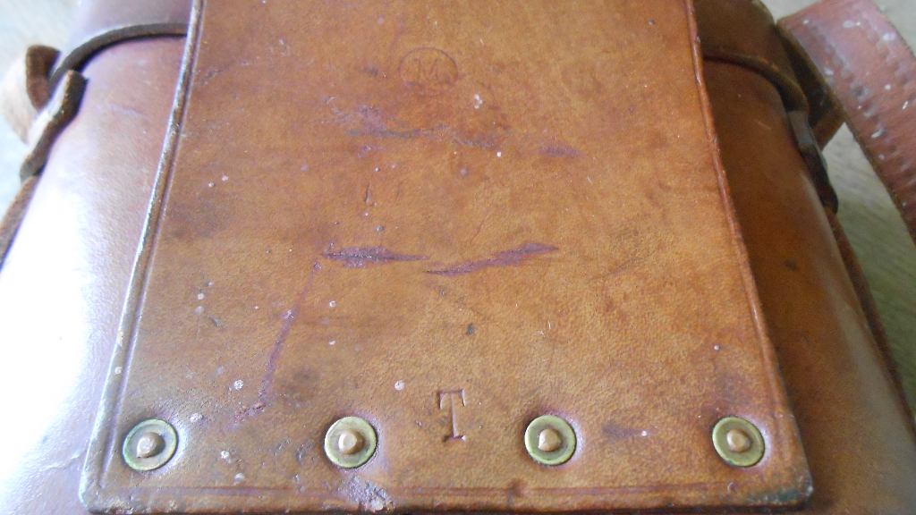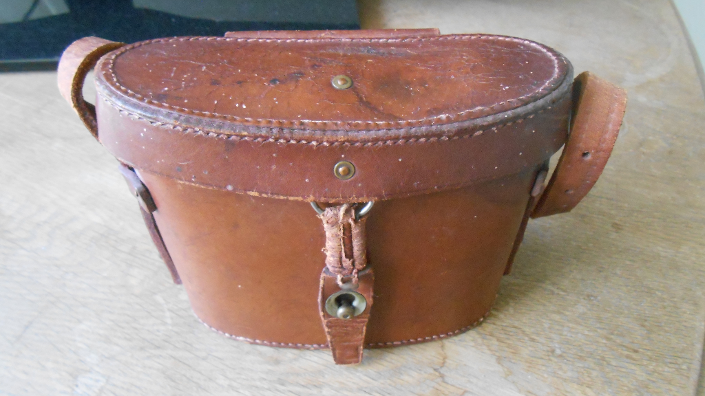 Een Kern Aarau kijker gebruikt door het Nederlands Leger (D.v.D.) gestempeld met lastig te vinden lichtbruine tas. Tas ook militair gemerkt en met stempels (M) en T. Deze heb ik ook op een Lewis Tas staan. Een van de mooiste sets die ik ooit te koop zag.