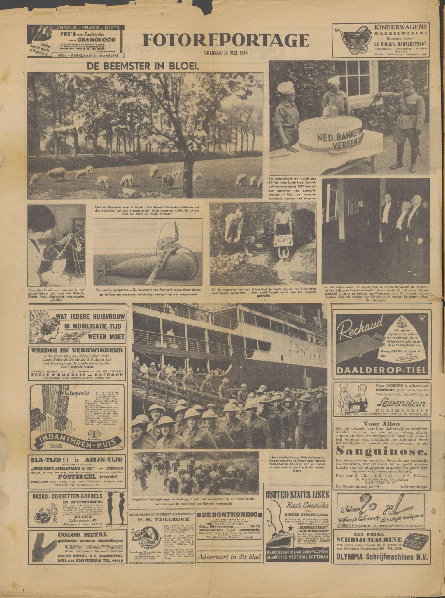 Vandaag weer een mooie aanvulling gevonden over het moment dat de heer van Loo de taart aansnijdt na aanleiding van de actie die de Nederlandsche banketbakkersvereeniging had i.v.m. Moederdag. Moederdag viel in 1940 op zondag 12 mei. En de banketbakkersvereeniging had als een soort van hart onder riem willekeurig 1000 bonnen verstuurd onder de gemobiliseerde soldaten in Nederland. Wie z’n geluksvogel was kon die bon ingevuld opsturen naar de Nederlandsche banketbakkersvereeniging en die zorgde dat er op 12 mei een taart werd bezorgd bij zijn moeder, vrouw, of vriendin. 1 krant had ik al origineel maar de andere had ik nog niet eerder gezien.